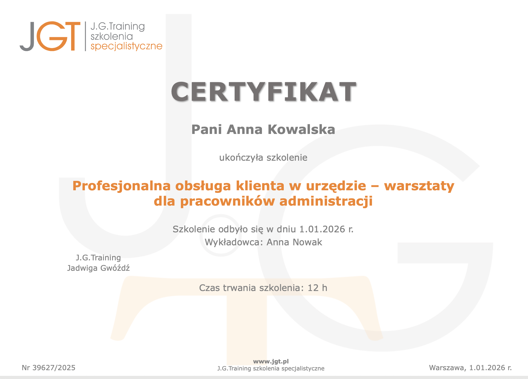 W ofercie J.G.Training znajdują się właśnie takie programy – skoncentrowane na praktyce, aktualnych regulacjach i realnych przypadkach.